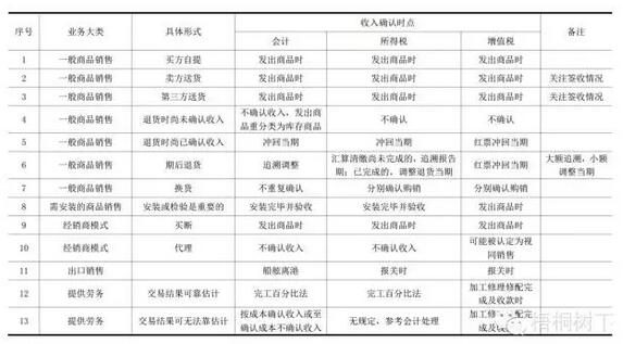 以下按不同業務模式分別討論,不限于會計準則和稅法法規的分類口徑,注重結合常見的業務實際情況進行分析。本文不討論建造合同收入。